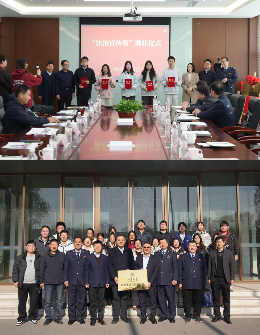 在山东朗进股份有限公司,石绍宾和同学们参加“‘宪’在出发”普法宣传活动,与济南市税务局、莱芜区司法局、投促局、税务局工作人员,以及企业代表、法律专家齐聚一堂,共话宪法引领下的经济发展与企业合规。活动中,石绍宾与山东朗进股份有限公司总经理李静恩为“学生实践基地”“研究生联合培养基地”揭牌,市税务局、莱芜区司法局、投促局、税务局为学生代表颁发“法治宣传员”聘书。在“‘宪’在论法沙龙”讨论中,同学们认真聆听关于“职能协同共促经济高质量发展”的解读和分享,仔细记录专家、学者、企业家对产学研协同育人的分析,并与在场嘉宾深入交流。