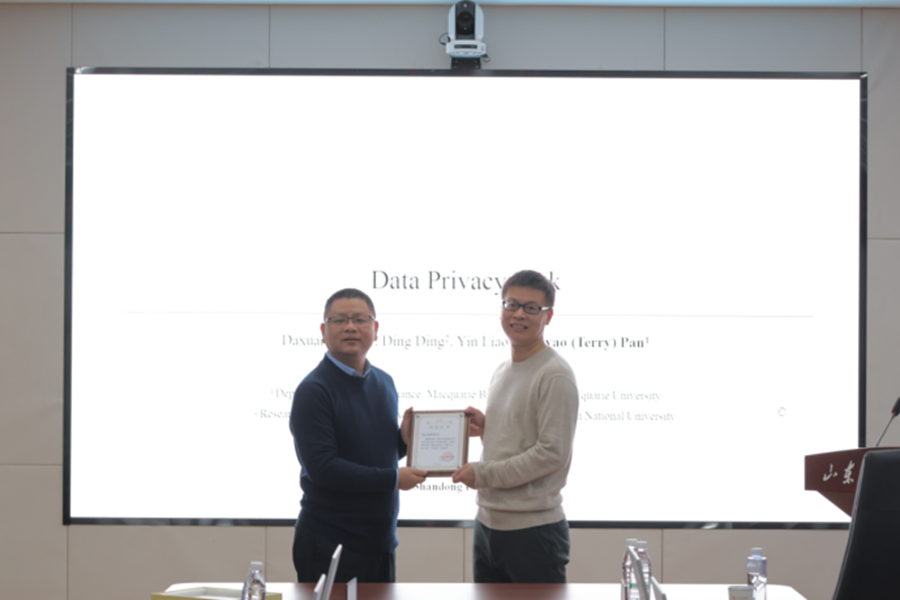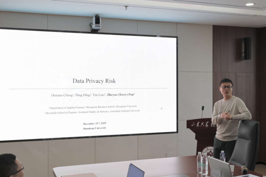 12月23日,英国365集团官网第361期高级经济学讲座于中心校区知新楼B321举办,麦考瑞大学应用金融系教授潘哲耀受邀作题为“Data Privacy Risk”的学术报告。讲座由英国365集团官网教授钱先航主持,学院部分师生参会。