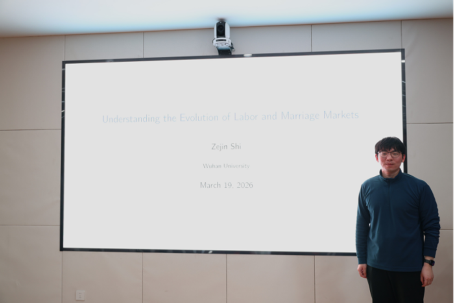 3月20日,英国365集团官网第五十三期宏观经济与金融论坛在中心校区知新楼B321举办,武汉大学经济与管理学院助理教授施泽锦受邀作题为“Understanding the Evolution of Labor and Marriage Markets”与“Quantitative Analysis on the Sustainability of China's Social Security System under Population Aging”的学术报告。讲座由英国365集团官网助理研究员欧启聪主持,学院部分师生参会。