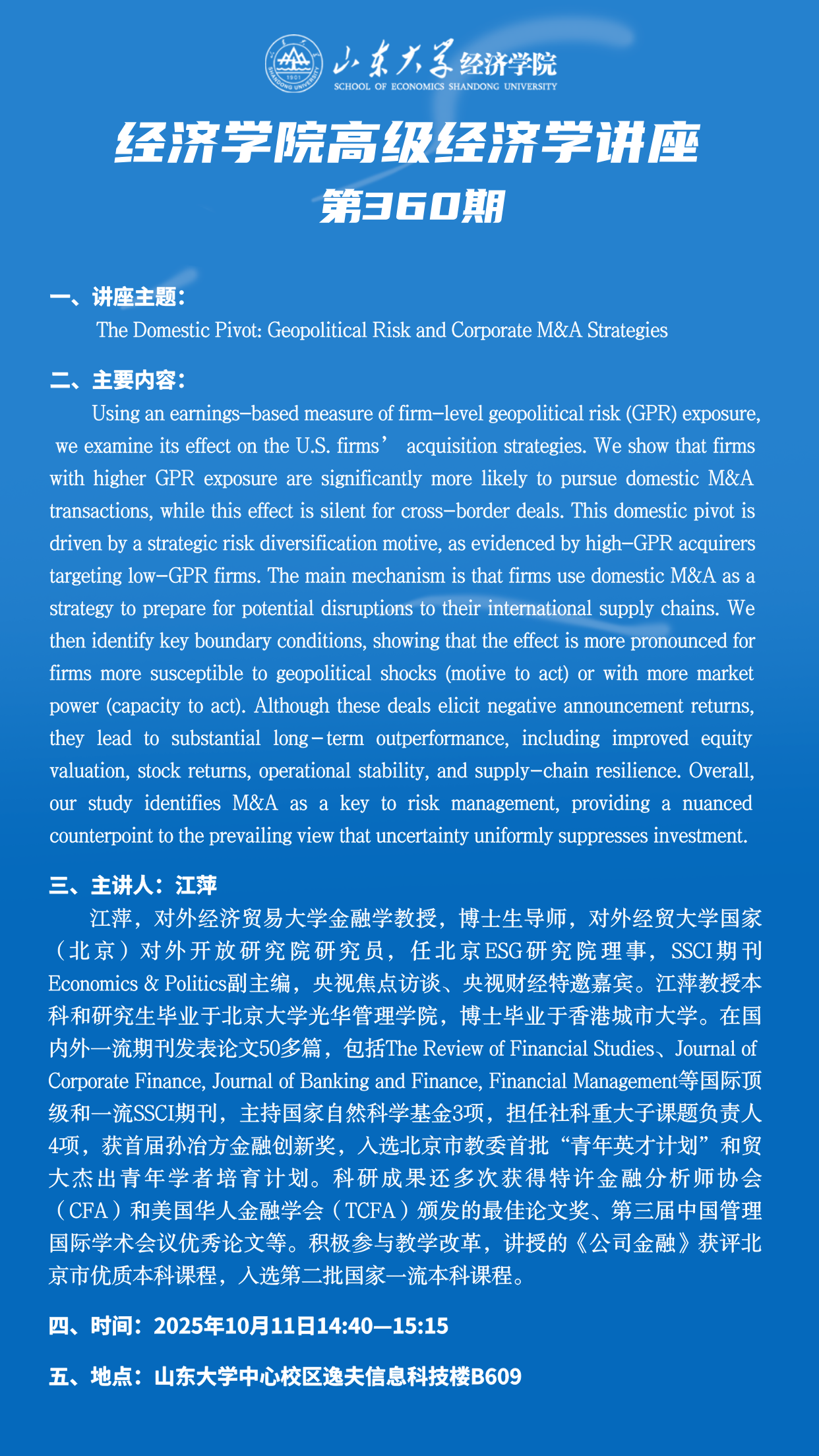 The Domestic Pivot: Geopolitical Risk and Corporate M&A Strategies(英国365集团官网高级经济学讲座第360期)