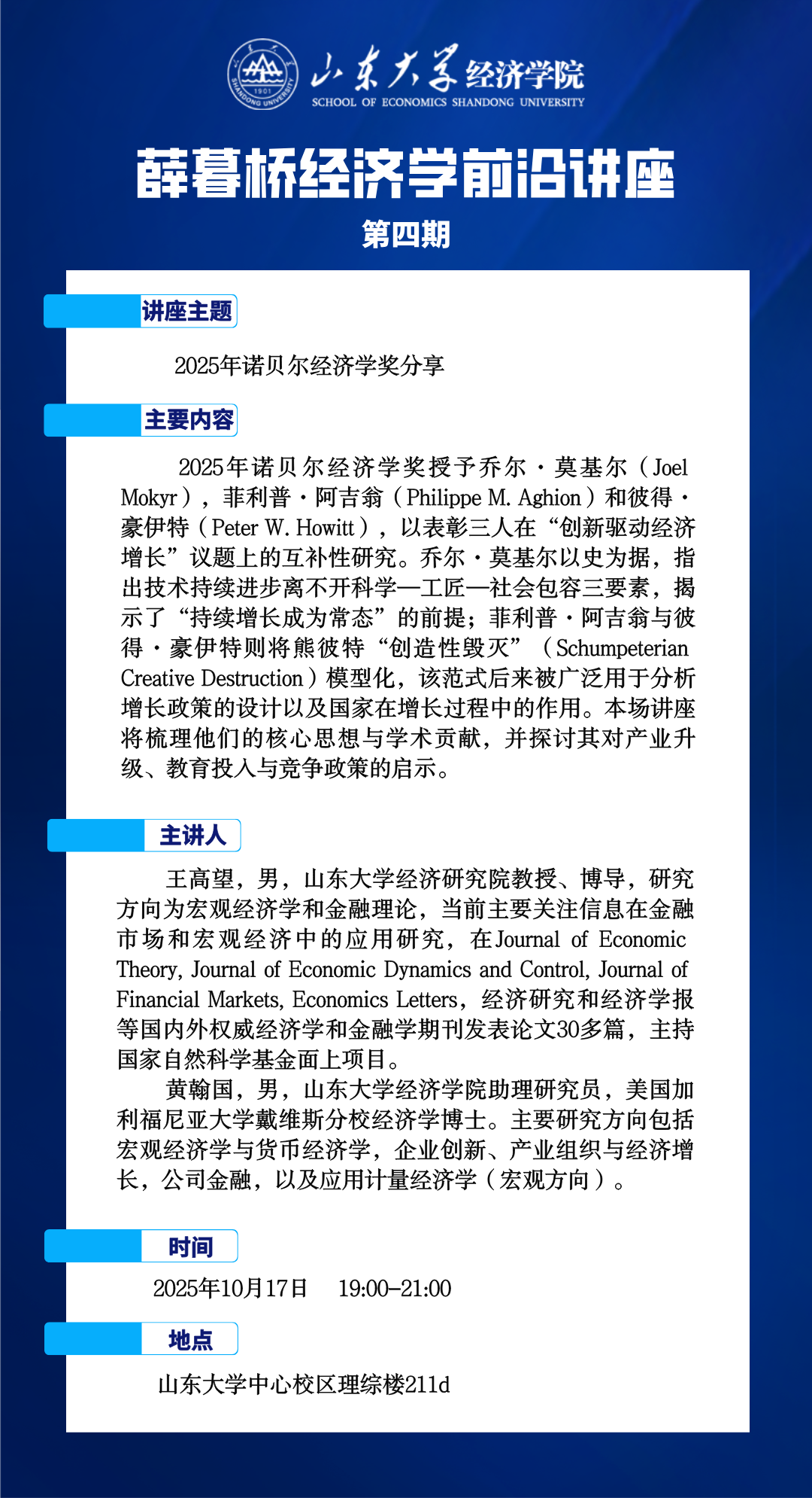 2025年诺贝尔经济学奖分享(薛暮桥经济学前沿讲座第四期)