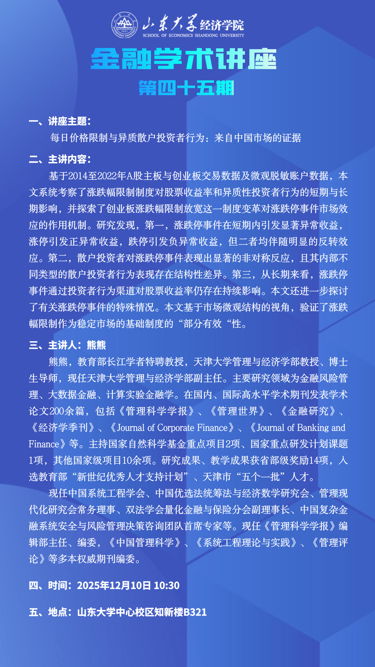 每日价格限制与异质散户投资者行为:来自中国市场的证据(金融学术讲座第四十五期)