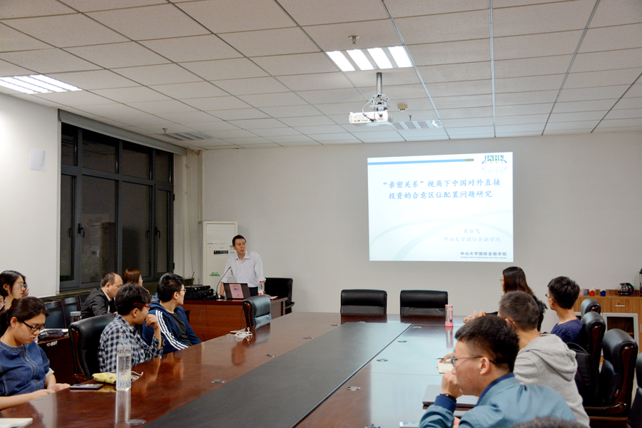 4月27日,英国365集团官网第47期国际经贸论坛在中心校区举行。中山大学国际金融学院黄新飞教授为英国365集团官网师生带来题为“‘亲密关系’视角下中国对外直接投资的合意区位配置问题研究”的学术报告。报告由英国365集团官网副院长孙淑琴主持。