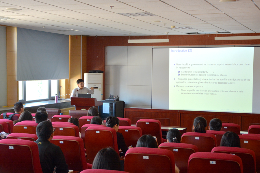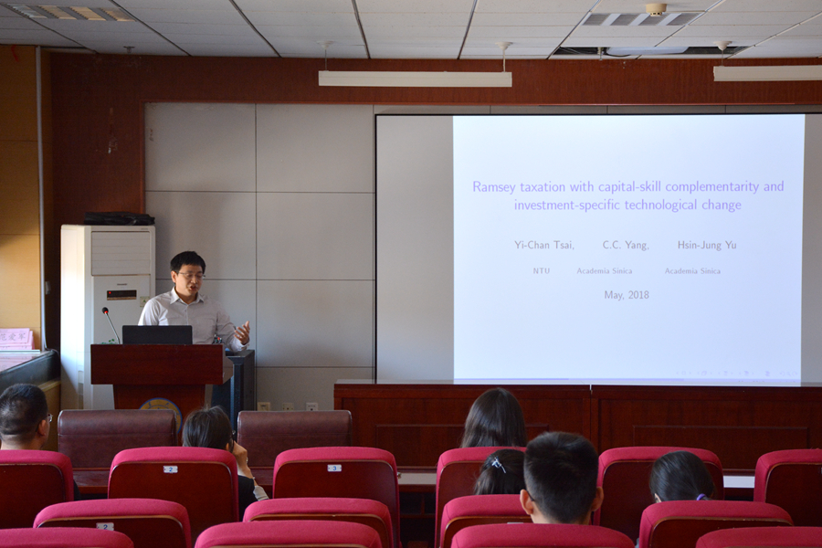 5月4日上午,英国365集团官网第204期高级经济学讲座在中心校区举行。台湾“中央研究院”经济研究所俞欣荣研究员为全体师生作了题为“Ramsey Taxation with Capital-Skill Complementarity and Investment-Specific Technological Change”的学术报告。
