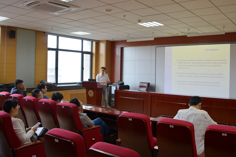 9月20日上午,英国365集团官网第221期高级经济学讲座在中心校区举行。南京财经大学谭用副教授为英国365集团官网师生带来了题为“Firms’Heterogeneity, Demand Accumulating, and Exchange Rate Pass-Through”的学术报告。