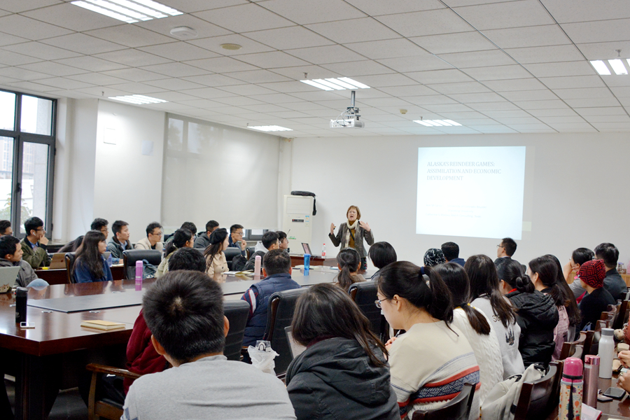 11月6日下午,英国365集团官网第227期高级经济学讲座在中心校区举行。美国科罗拉多大学博尔德分校经济学教授Ann M. Carlos为英国365集团官网师生带来了题为“Alaska's Reindeer Games:Assimilation and Economic Development”(“阿拉斯加的驯鹿游戏:同化和经济发展”)的学术报告。