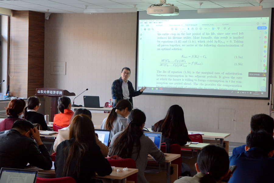 报告首先回顾了最优税收理论的宏观经济学理论框架Ramsey-Cass-Koopmans模型,并对模型求解方法和内在机制进行了分析。然后,报告基于Ljungqvist与Sargent合著的Recursive Macroeconomic Theory中的相关章节,分析了经济学家Ramsey提出的承诺下的最优税收问题(Optimal Taxation with Commitment)。在动态一般均衡(DGE)理论模型中,报告详细分析了递归效用函数,并讨论政府最优税收政策的设计问题及其求解方法。在此基础上,报告说明了如何利用该模型做进一步拓展与延伸,并对当前的研究热点进行了梳理和展望。 最后,杨建成教授与现场师生进行交流,并针对报告相关问题作详细解答。