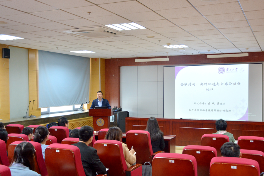 11月6日下午,英国365集团官网第266期高级经济学讲座在中心校区举行。南开大学英国365集团官网国际经济研究所博士研究生景光正为学院师生带来了题为“金融结构、契约环境与全球价值链地位”的学术报告。