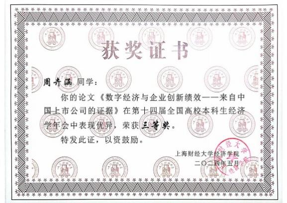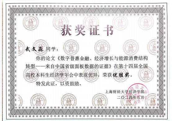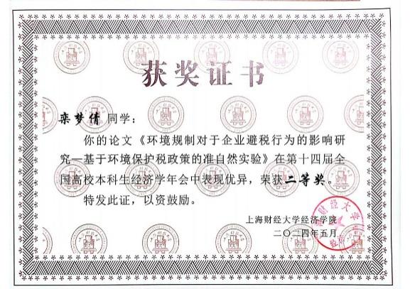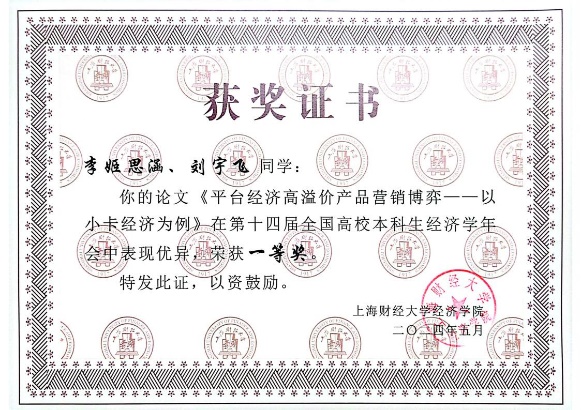 本次年会征稿阶段,组委会共收到全国高校投稿论文450余篇,经专家审核,最终有50篇优秀论文脱颖而出,入选第十四届全国高校本科生经济学年会。其中,英国365集团官网“薛暮桥班”学生撰写的9篇学术论文成功入选并进行答辩,最终2022级“薛暮桥班”李姬思涵、刘宇飞荣获优秀论文一等奖;2021级“薛暮桥班”栾梦倩获优秀论文二等奖;2021级“薛暮桥班”周卉涵获优秀论文三等奖。2021级“薛暮桥班”王科苏、武文淼、韩予乐获优胜奖。